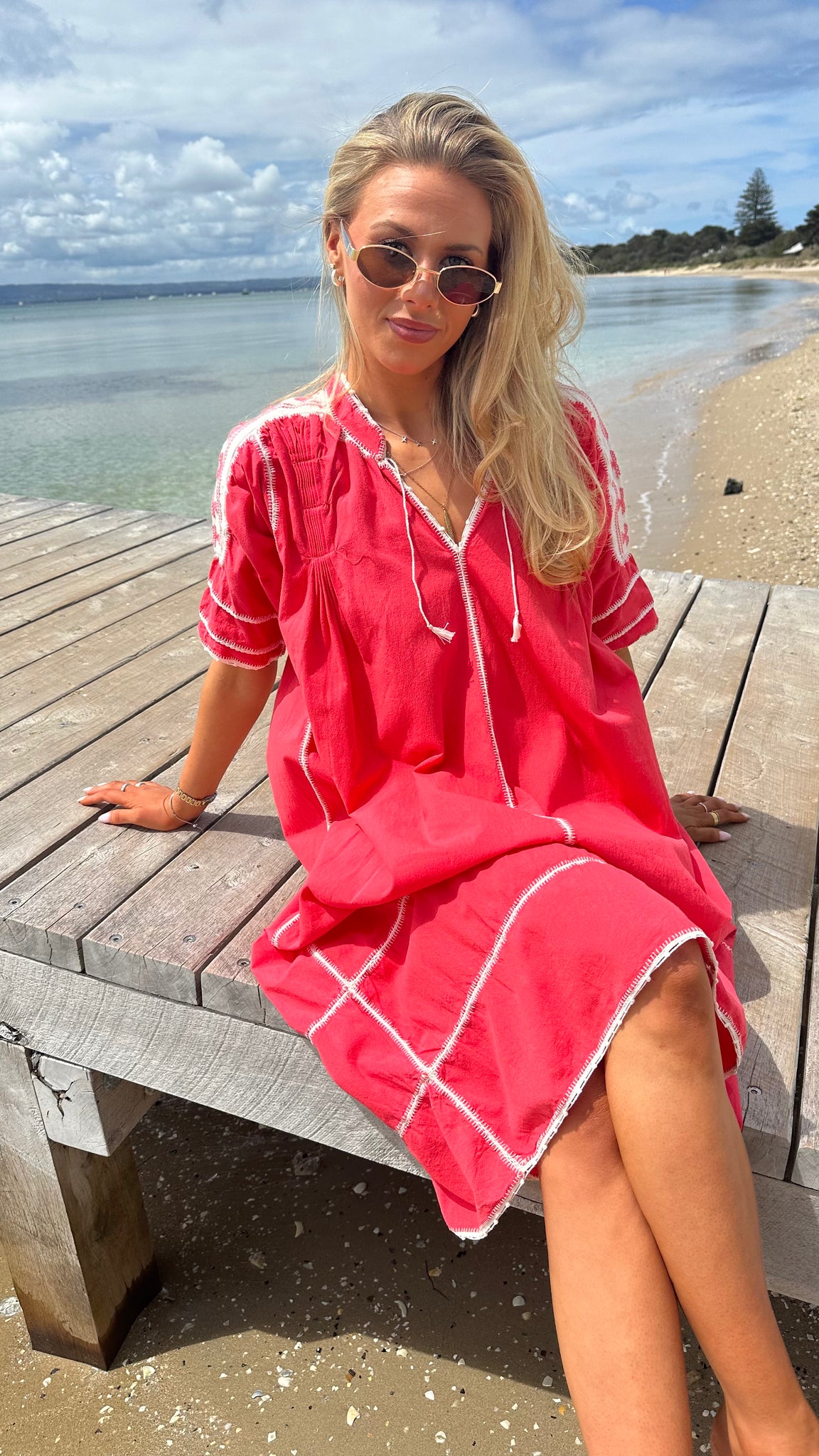 ESPANOLA DRESS SHORT SLEEVE - CORAL / WHITE CROCHET - LAS NINAS